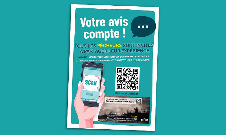 Du 3 au 26 octobre 2025, tous les pêcheurs (en mer comme en eau douce) sont invités à partager leur expérience. Une enquête dirigée par le GIFAP (Groupement de l'Industrie Française d'Articles de Pêche) et de l'USC (Union des Entreprises du Sport et du Cycle), avec le soutien des marques et acteurs de la filière, pour mieux connaître les pêcheurs et envisager le marché du futur.